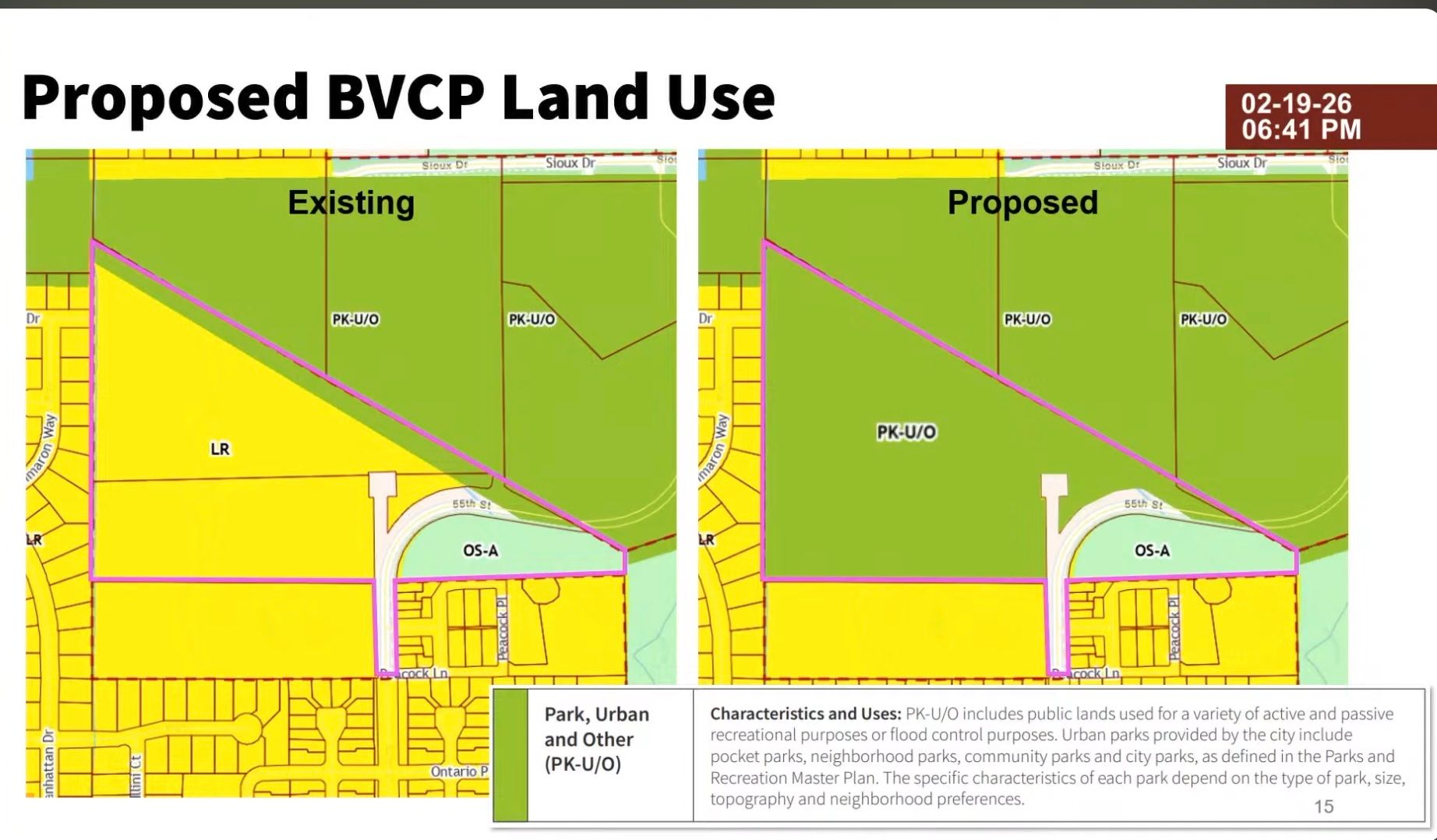 City staff also described the area as a “special opportunity” tied to future expansion of East Boulder Community Park.